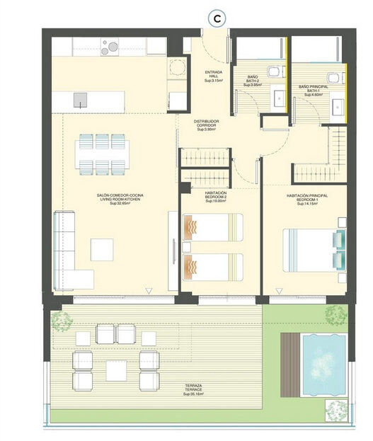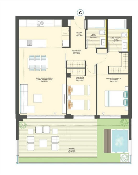 - 2 Bedrooms
